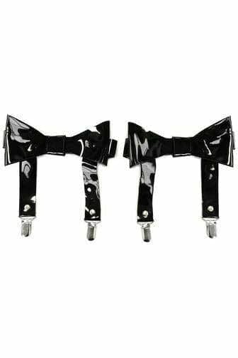 Rock your look in these sultry, sexy Black Patent Bow Garters! Perfect for turning up the heat in festival looks or lingerie, they feature a pull on elastic back and removable snap-on garter attachment. Get ready to tantalize and tantalize!