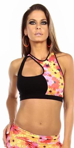 Sexy Cut Out Flex Racer Back Supportive Sports Bra Top - Black/Sunflower Musotica.com