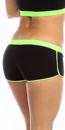 Sexy Neon Trim Fit Super Set Low Rise Athletic Gym Shorts - Black/Neon Green Musotica.com