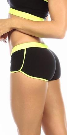 Sexy Neon Trim Fit Super Set Low Rise Athletic Gym Shorts - Black/Neon Yellow Musotica.com
