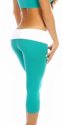Sexy Roll Down Sport Band Stretch To Fit Shred Capri Yoga Leggings - Teal/White Musotica.com