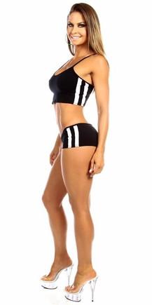 Sexy Trim Balance Work Out Triple Stripe Fitness Full Coverage Shorts - Black/White Musotica.com