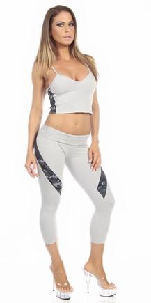 Sexy Hi Lo Waist Blue Digital Camo Combat Athletic Capri Pants - Grey/Blue features these stretch athletic work out Capri yoga pants with high or low waist roll down option and military pixilated navy blue Digi camo accents. Top not included.Limited by M fitness line was created and manufactured in the USA in honor of our US Armed Forces. All the digital camo fabric used as accents in this line, both navy blue digi camouflage and UPC green camouflage, are authentic military fabric. We are proud to support our troops and create a line that is dedicated to their hard work, sacrifice, and pursuit of physical fitness.